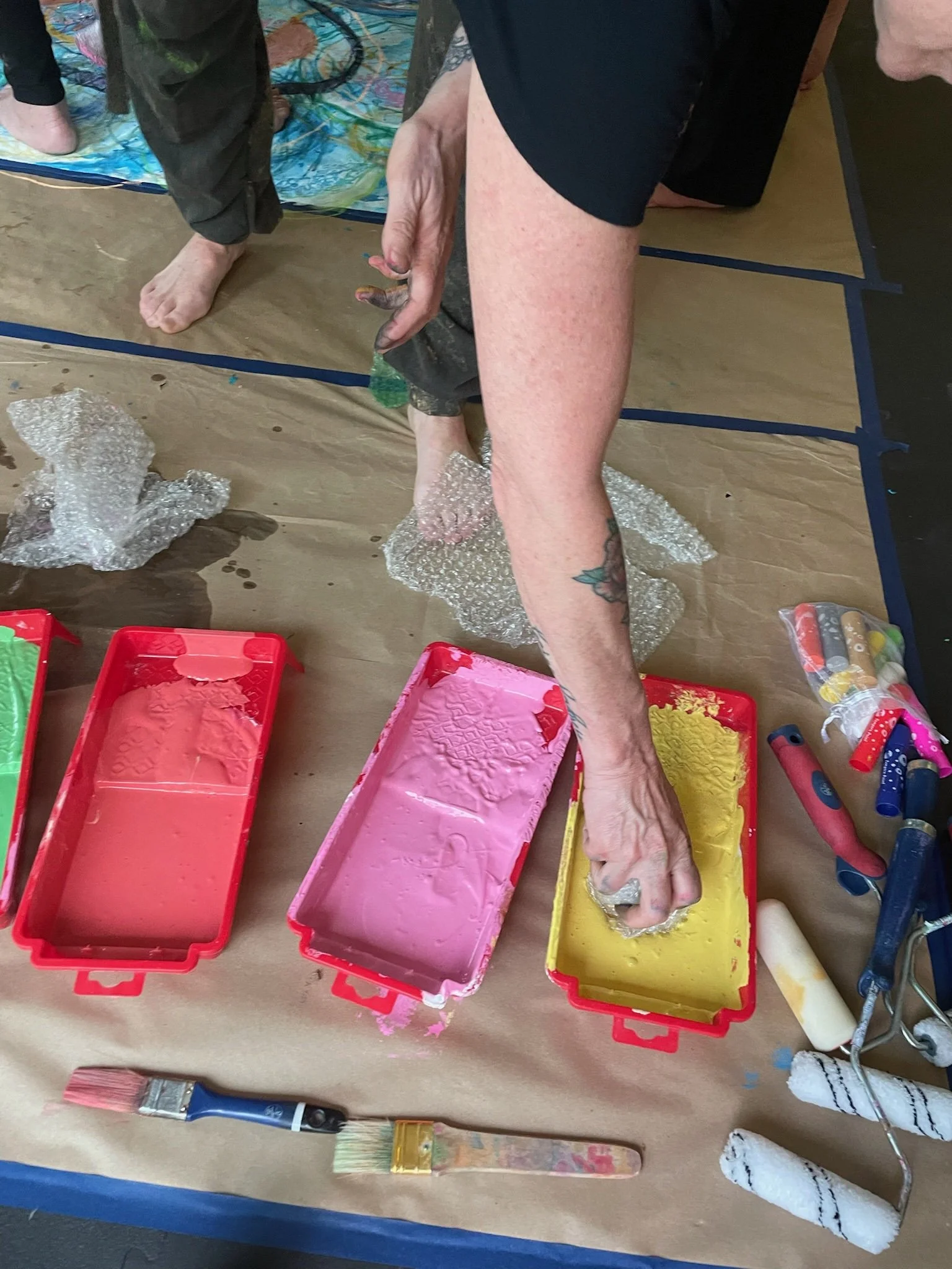 Spring 2025 at Fulbeing Collective was the first full day integrated yoga retreat held there. This retreat was an opportunity to plant the seeds of intention into working with many different healers, teachers and practitioners with many modalities for wellness. We intentionally changed up the classes so students’ perspectives of asana, breathwork and mindfulness could be cultivated from the depths of their awareness and not super specific directions. We moved the scale and ownership of their practices. We explored somatic movement and personal asana alignment, myofascial release techniques with props, the study of spirit study through the sutras and therapeutic art making for tapping into the sensory feedback look for creative play and self-expression. This masterpiece was created in record time in the flow freely in 1and half hours because of the inner work we did up until the point of guidance to step into an artmaking process. We bloomed and grew!